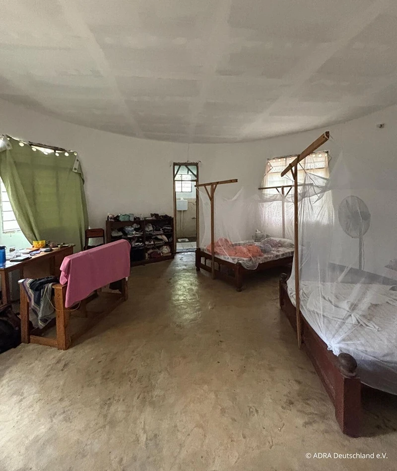Die Freiwilligen wohnen direkt auf dem großzügigen Gelände der Einsatzstelle ADRA Tansania. Sie teilen sich hier ein großes Zimmer mit Bad. Dazu gehört eine Küche, die auch von anderen ADRA-Mitarbeiter:innen genutzt werden kann.